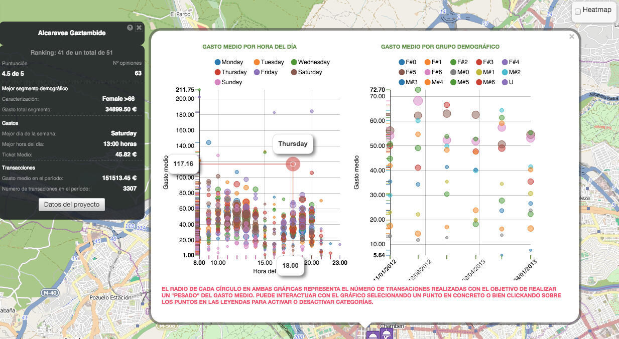 Real Data Facts developed an application using this source and complemented it with online options available through the Internet. The objective was to measure the correlation of online reputation with income in restaurants located in Madrid.